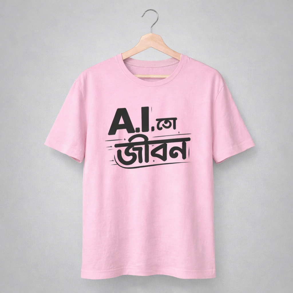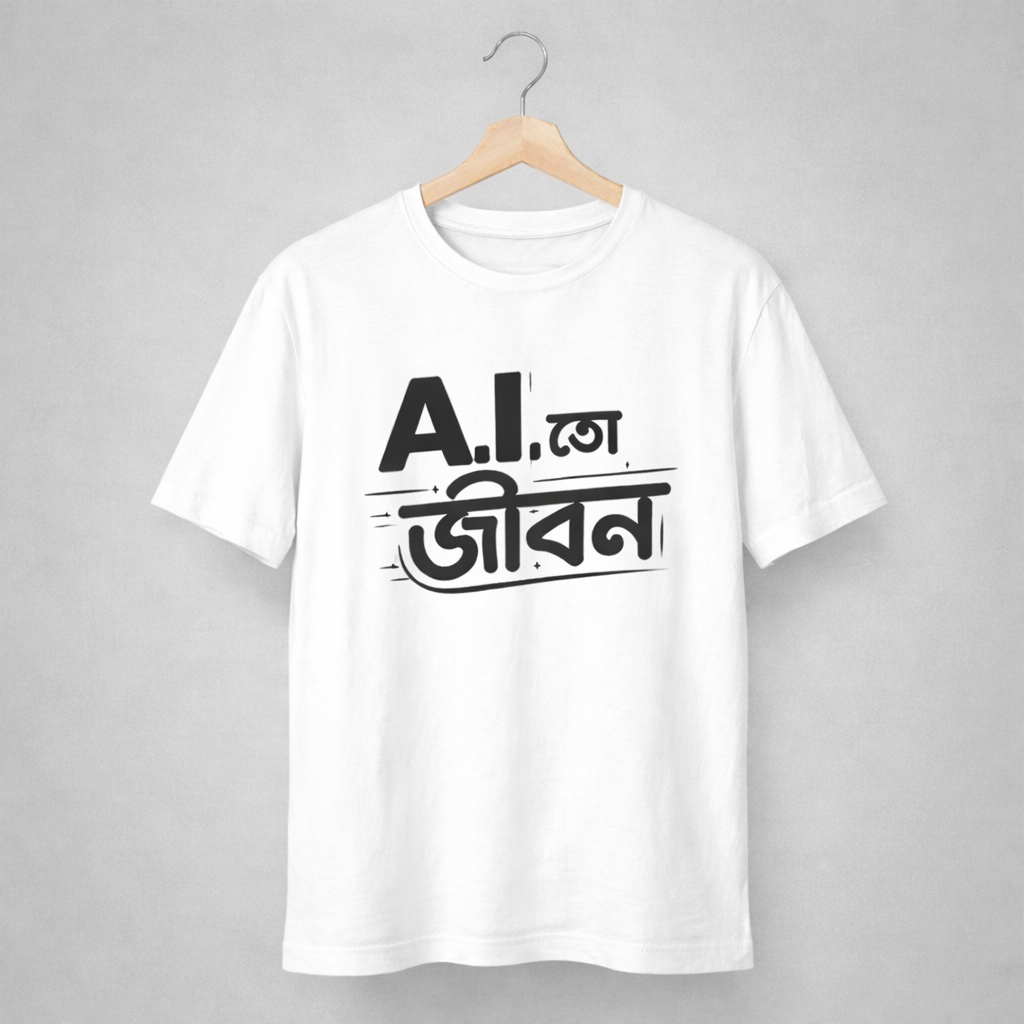 Short Description: For the ones who can’t write an email without a prompt and trust algorithms more than relatives. Wear the future, Bangali style! 🤖✨